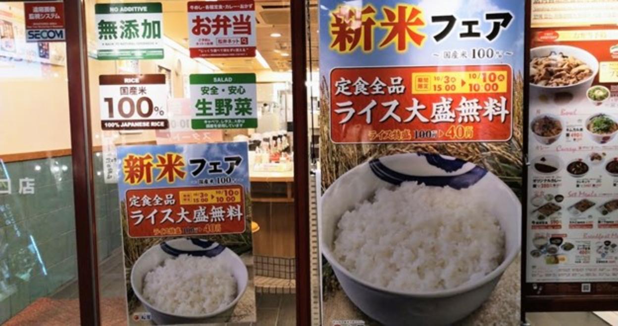 日本人吃米講究產地來源,而且強調新米。這也是一家白飯吃到飽的店,大大的宣傳新米到店。(圖片來源/方儉提供)