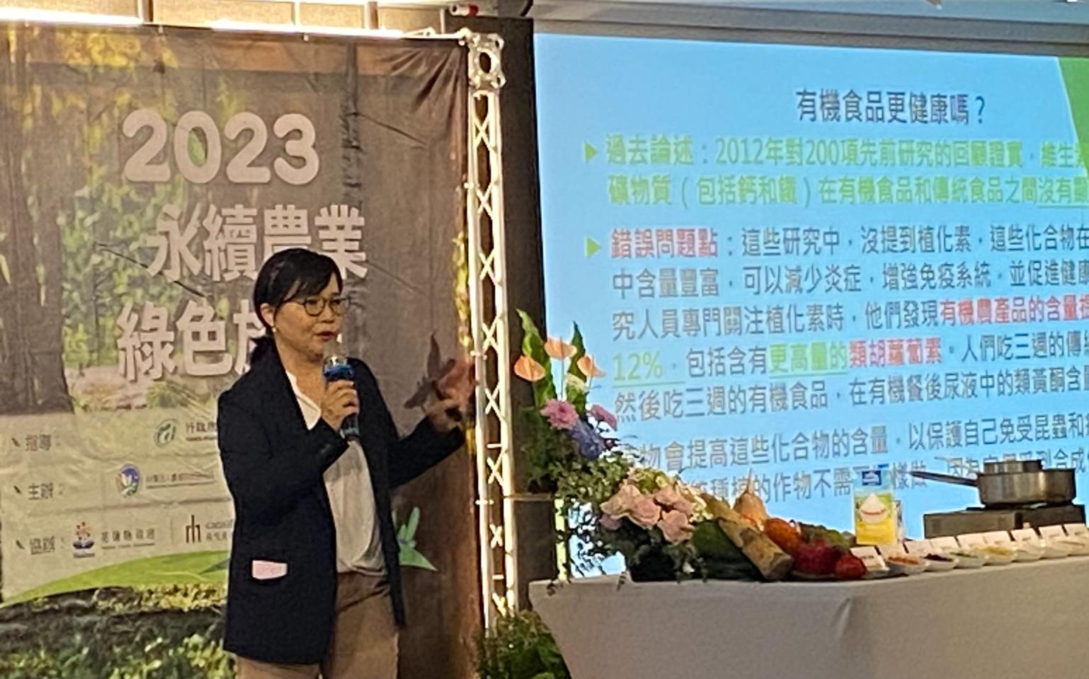 論壇最後一場由營養師謝宜芳擔綱,倡議「實踐低碳蔬食,愛地球吃有機,蔬食低碳挺永續」,從營養的角度,建議大家吃新鮮的食物,吃在地食物以減少碳足跡,環保愛地球,吃食物的原味,不吃添加物,腸道保健康,她指出,我們考慮環保要吃低碳綠色餐食,要吃食物原型,也要考慮低碳,才是真正對我們地球盡一份心力;旅遊的過程當中,我們要選擇低碳環保的飲食才是重點。
