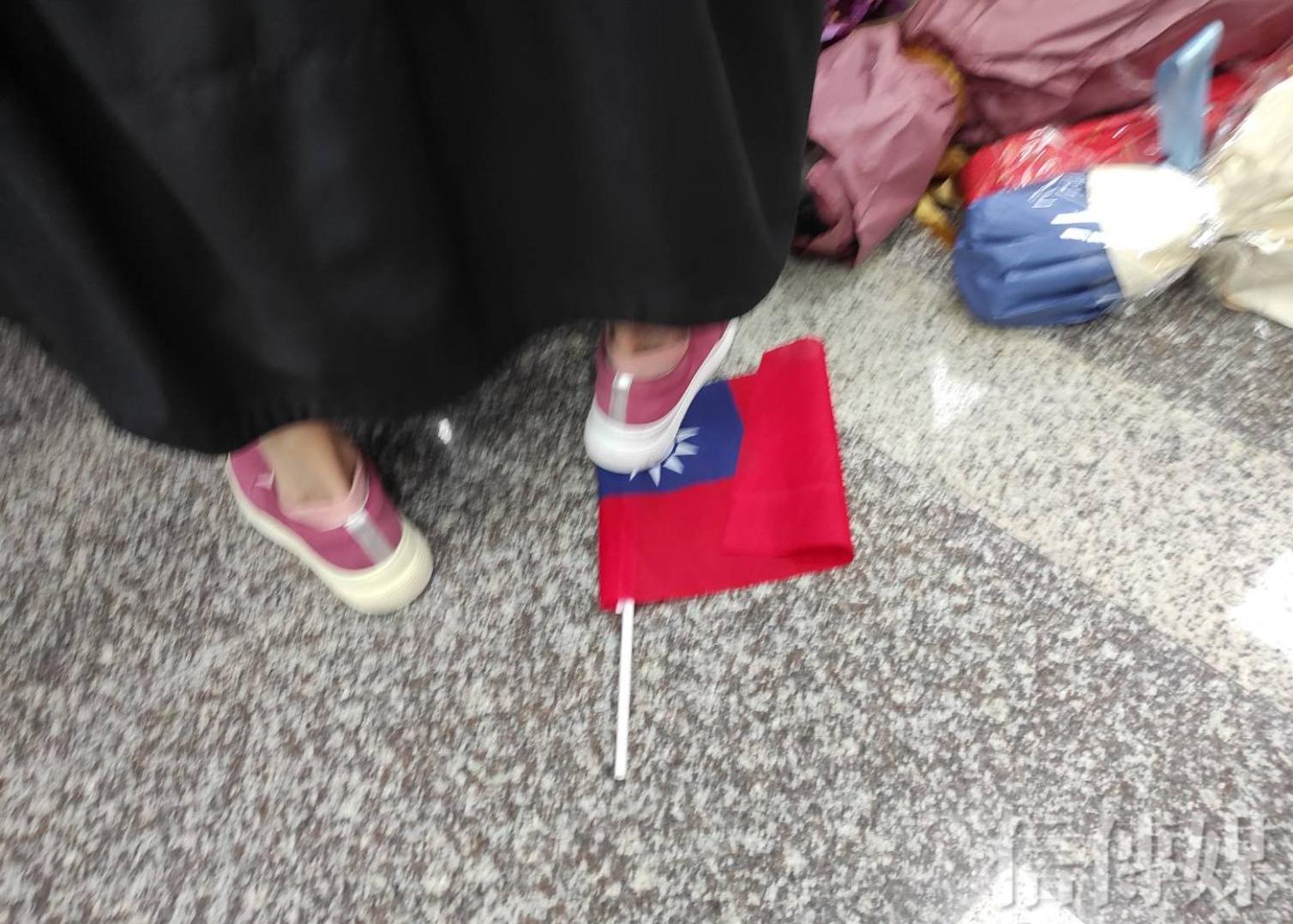 只可惜,原本歡欣鼓舞的場面,卻突然衝出多名「春秋公墓」陳抗者,當場風雲變色。一位女性陳抗者當場被架走,現場一度爆發推擠;藍營支持者手上的國旗,則被棄置地上慘遭踐踏。