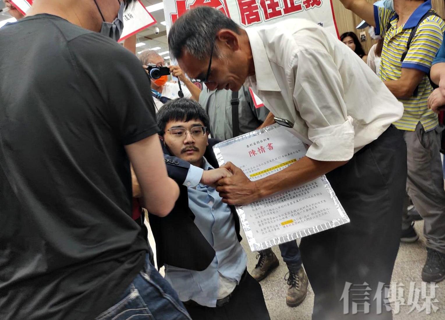 過程中,一面國旗被棄置地上,慘遭藍營支持者路過踐踏,等到人潮稍微退去後,《信傳媒》記者趕忙撿起來恭敬放好。由於侯友宜講話一貫輕聲細語,所以當四周支持者與陳抗者都高呼口號拼場時,現場幾乎難以聽到侯在講什麼,場面相當尷尬。中途一位女性陳抗者突破重圍,打算向侯下跪陳情,但立即被旁人強硬架走,侯則繼續喃喃演說,對她置若罔聞。