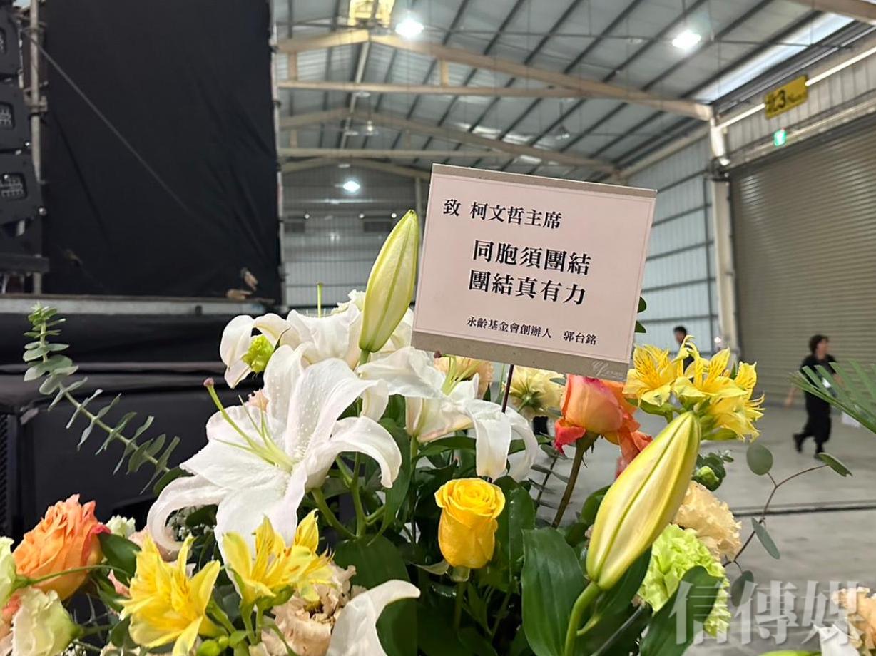 有趣的是,近日盛傳將獨立參選總統的鴻海集團創辦人郭台銘,以「永齡基金會創辦人」身分送花籃,並在賀卡上大方寫下:「致柯文哲主席:同胞須團結,團結真有力」,再度將郭柯配議題搬上檯面。
