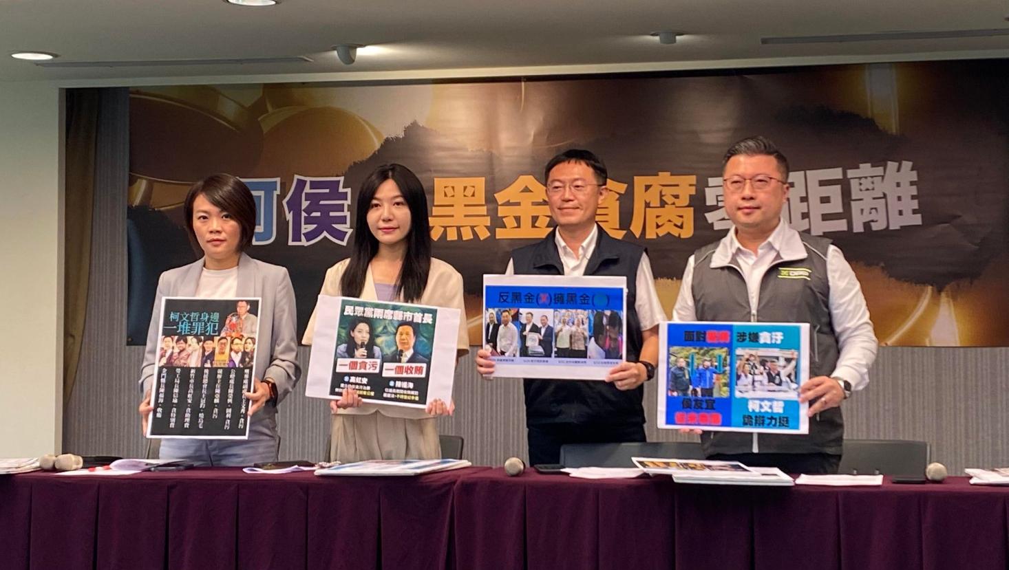 民進黨發言人張志豪與新北市立委參選人李坤城、台北市立委參選人吳沛憶、台北市議會黨團總召簡舒培,今(8/15)日召開「柯侯與黑金貪腐零距離記者會」,痛批侯友宜及柯文哲,不管是擔任市長或身為總統參選人,面對身邊黑金及貪汙人士的態度總是雙標,憑什麼當總統。