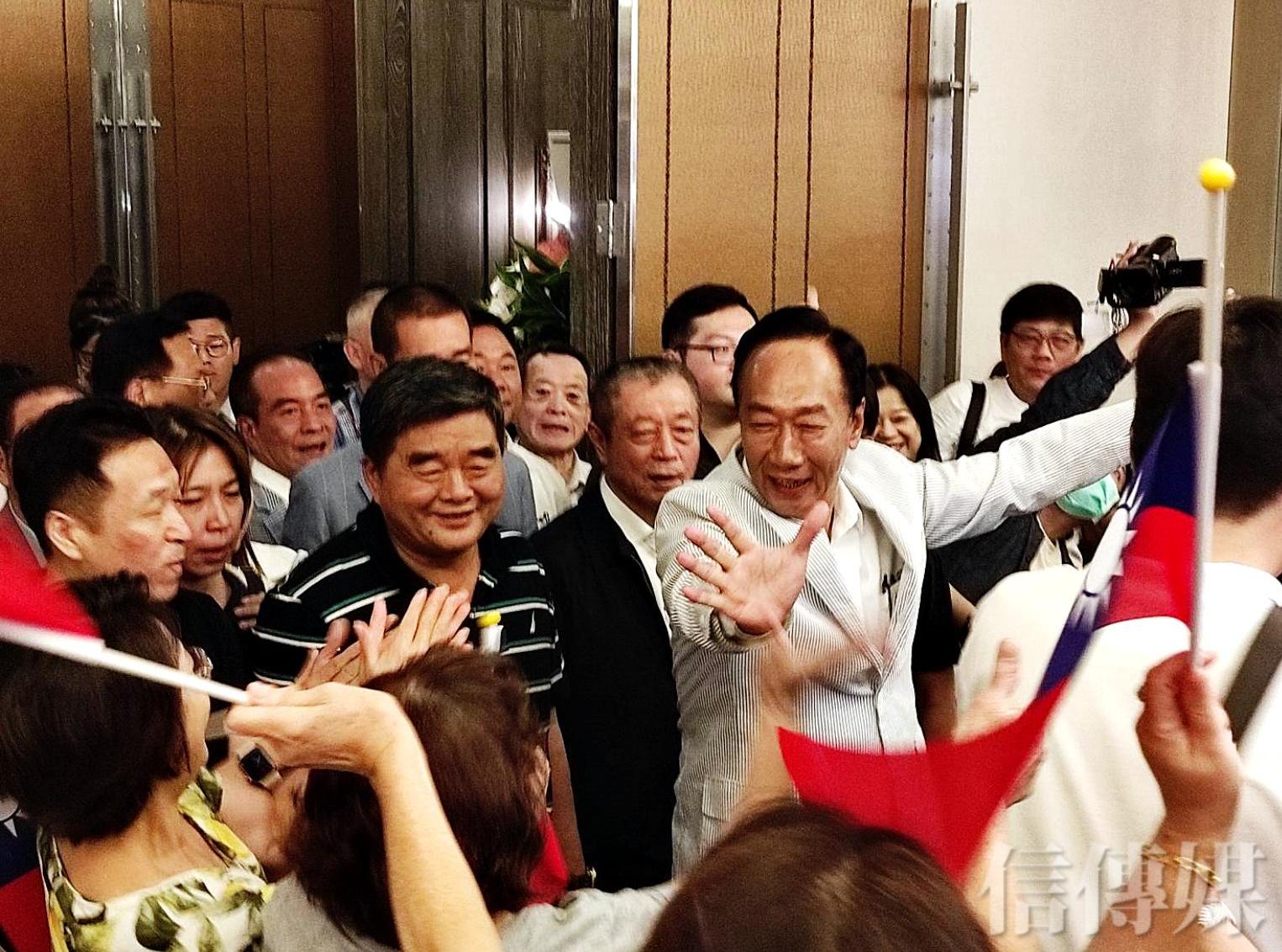 同樣坐在主桌的蔡正元,也在到場時被媒體追問同樣問題,反應機敏的他,妙答「我挺張榮味」。在媒體數度追問下,不管謝還是蔡都未講出「我挺郭台銘」這5個字。
