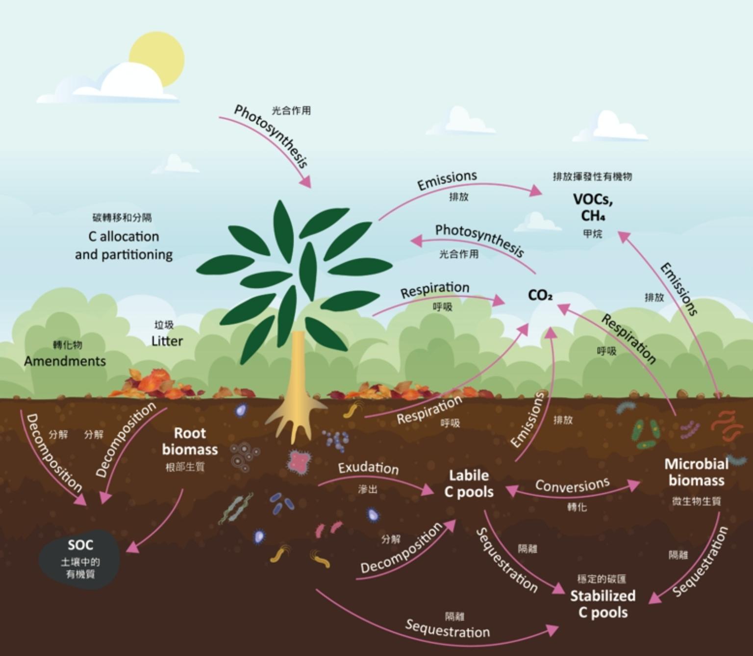 我最近的體悟:因為台灣的熱帶、亞熱帶氣候屬性,有機質會快速分解,土壤有機碳的存量可以說和投入的有機肥沒有太大的關係,除非是靠土壤中的細菌滋生、繁衍,形成有生命的有機體的循環系統,增加細菌量,就是增加土壤生質,才會產生恆久的有機質(生質)的機會,這不只是有機農業,更進一步來說,是生機農業,是微生物的生機,才有種碳、增加土壤碳匯的可能。