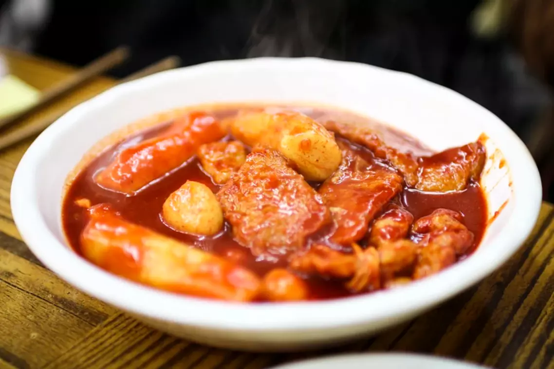 辣炒年糕絕對是韓國街頭美食代表,常可見一個帳棚餐車,都會有個紅通通的區塊,就是賣著「辣炒年糕」,鮮豔的紅色就是甜甜的紅辣椒醬,但辣度其實沒有看起來那麼辣,拌炒著片狀的白色年糕,裡面還有魚板、洋蔥、蔬菜等,以女生食量來說,可以當正餐,而這其實是源自宮廷的一道料理,用來招待賓客的高檔菜餚,用的是水煮條狀的白年糕,用醬汁拌炒肉類和蔬菜,上桌前加白果、核桃,由於使用醬油非辣椒醬,所以並不辣,美味程度與「辣炒年糕」不相上下。