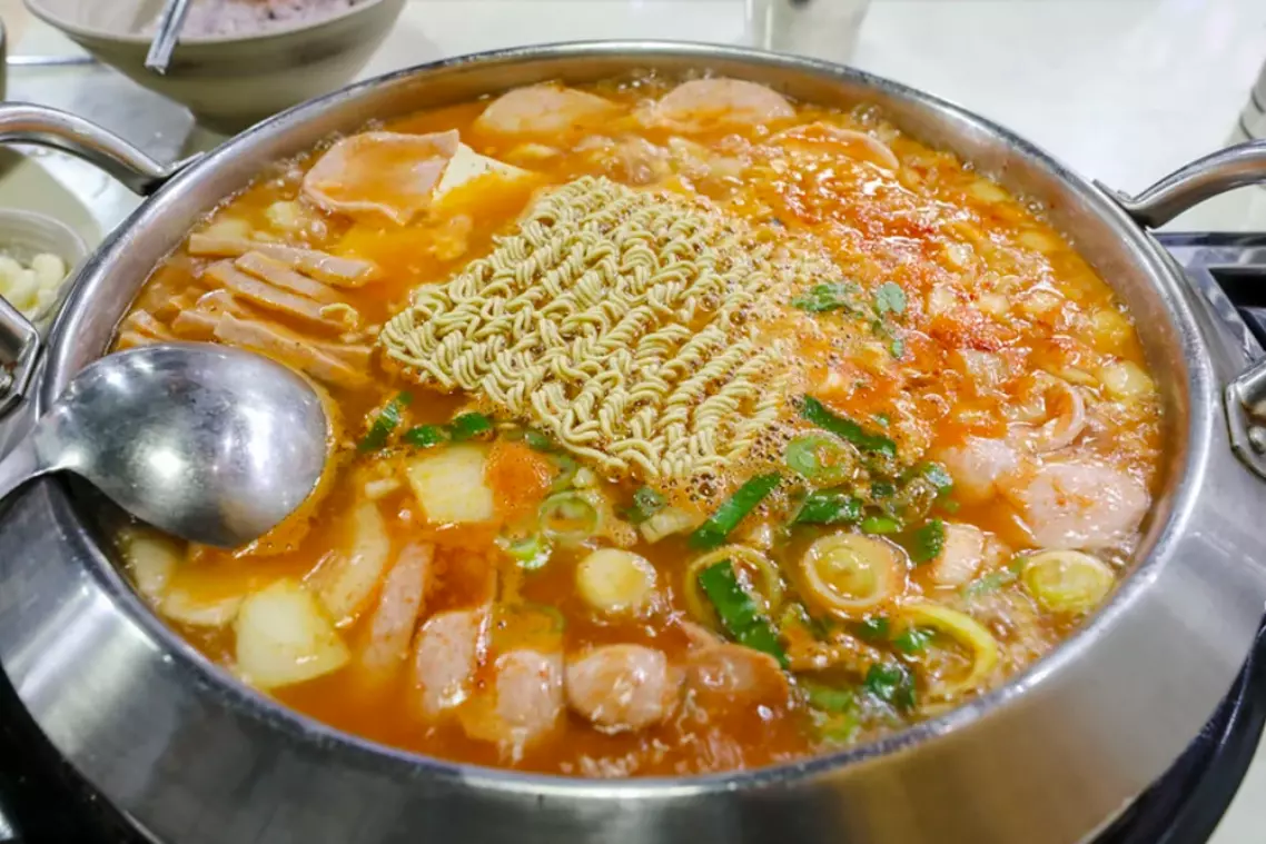 適合多人一起享用的「部隊鍋」,就好比我們一般吃的火鍋,所有配料都放到裡面,起源於韓戰時期,因為打仗期間物資短缺,更何況想要吃到新鮮的食材,更是不可能,因此將部隊中的食物,像是火腿、香腸、午餐肉等罐頭食品混煮,名稱就這麼得來,如今的「部隊鍋」內容更為豐富,有泡麵、泡菜、冬粉、火腿、小熱狗、泡菜、雞蛋、年糕、蔬菜、碎肉末、豆腐、起司片等,由於也是加入辣椒醬,所以湯頭喝起來也偏濃郁類型,編輯覺得這道韓國美食,其實在家自己做也是滿容易完成的。