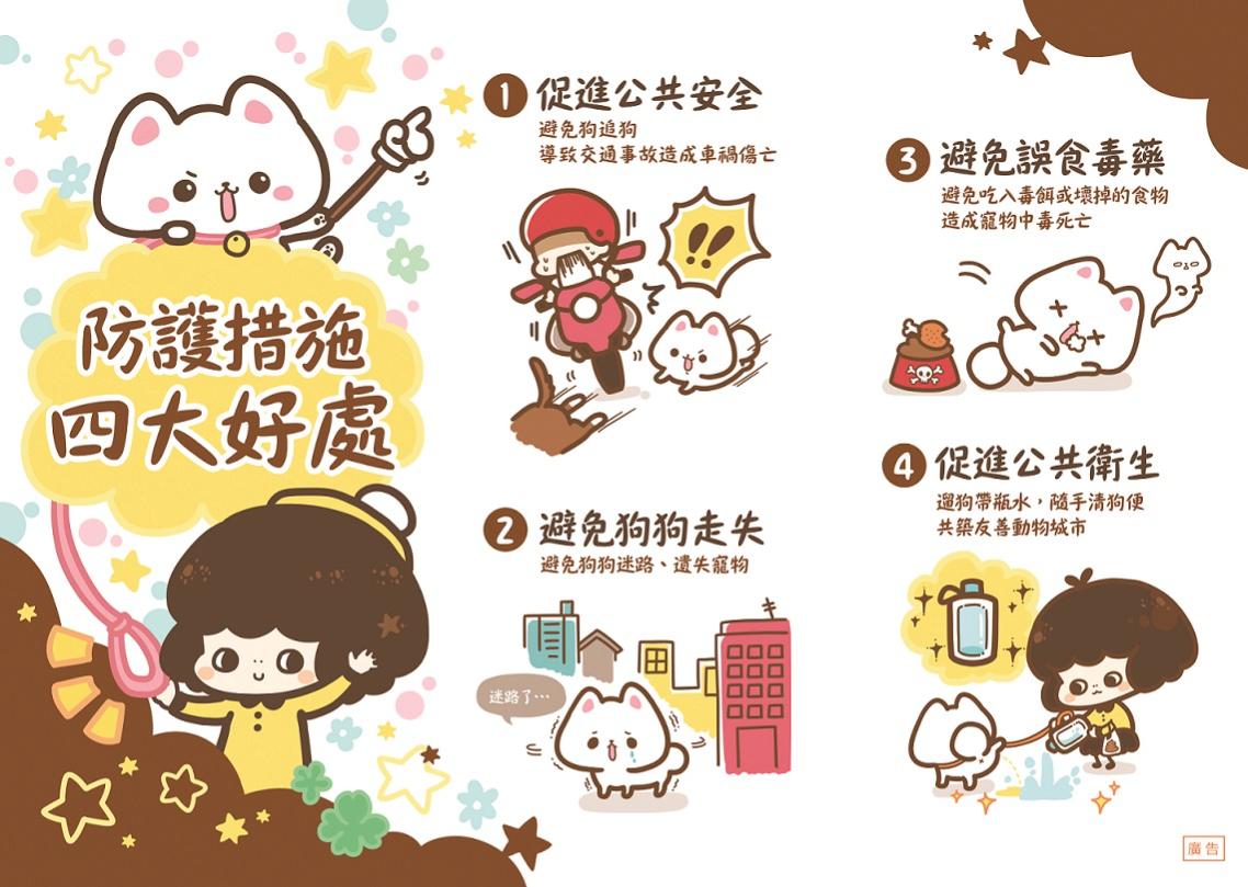 北市動保處表示,最常見到飼主帶著狗狗外出未繫牽繩,狗狗因遇到陌生動物而出現叫囂或撲咬行為,或不熟悉路況發生交通意外,飼主往往無法第一時間制止牠們,導致其他人或動物受傷而發生糾紛,甚至造成狗狗車禍死亡等遺憾,讓原本開心帶著狗出門散步的社交活動,變得不愉快。