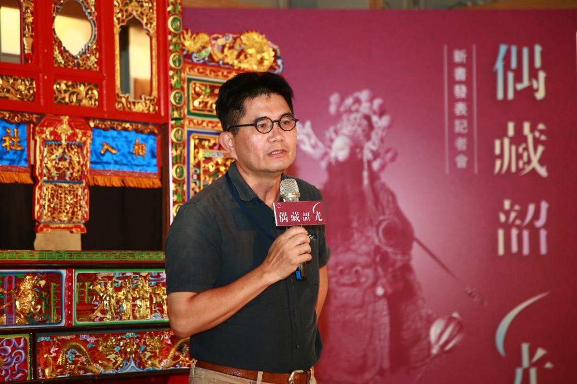 文化部所屬國立臺灣博物館日前在小白宮召開「臺博偶戲館藏系列叢書」第一、第二冊新書發表會,文化部主任秘書陳登欽、國立臺灣博物館長洪世佑、西田社董事長陳榮祥及創辦人陳金次、李鴻禧、楊維哲等人,以及西田社、新興閣、真快樂等多位國內傳統布袋戲團團長共同出席。