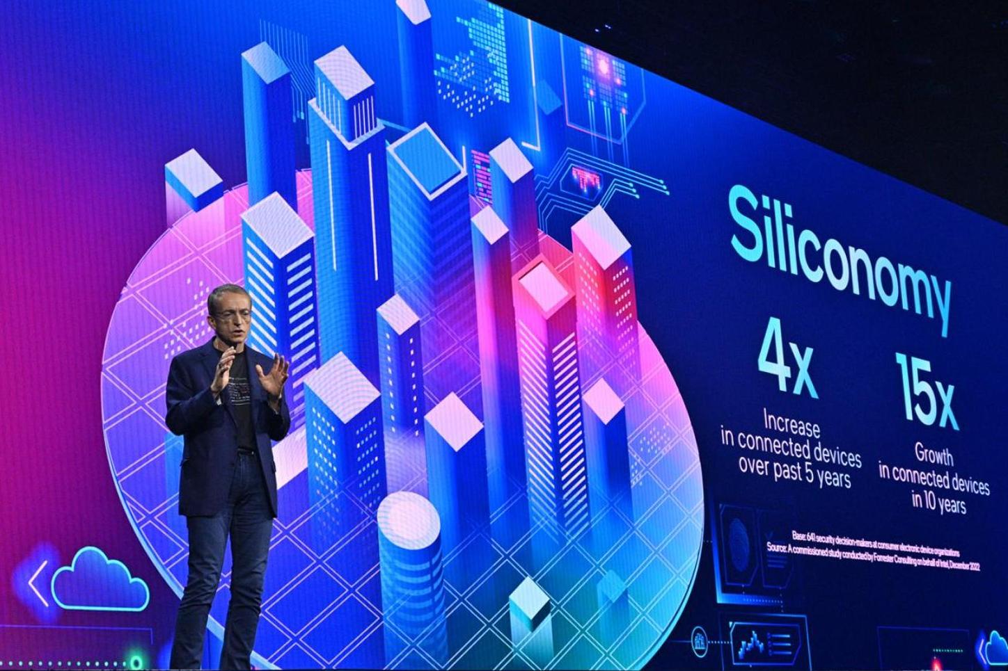 英特爾將透過公開、多架構軟體解決方案將旗下硬體產品與AI結合。他也強調AI協助驅動由晶片和軟體帶來持續成長的「矽經濟」(Siliconomy)。晶片創造了價值5,740億美元的產業,驅動全球科技經濟帶來近乎8兆美元的產值。