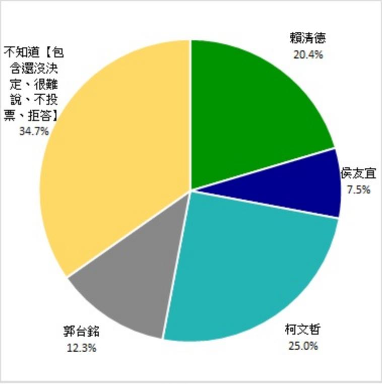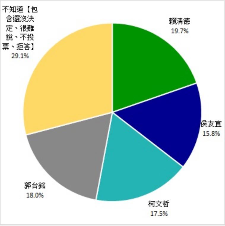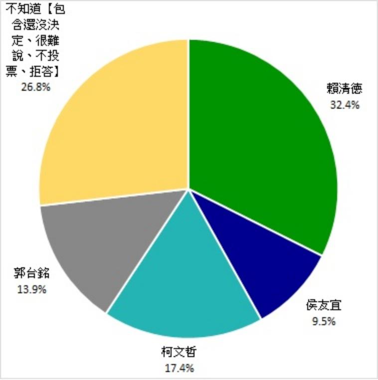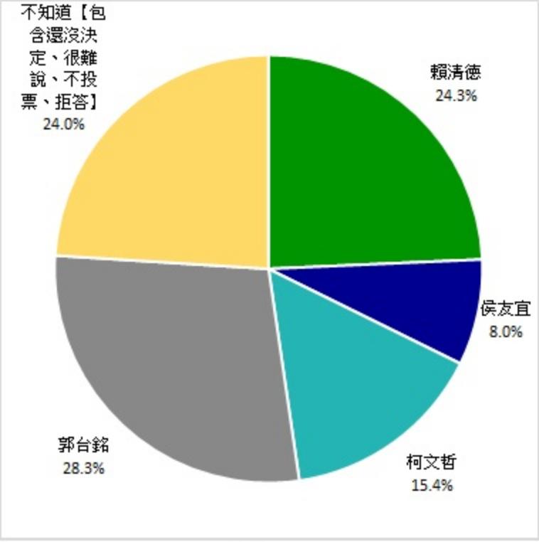至於四位參選人當中誰比較有能力振興台灣經濟?民調結果顯示,郭台銘以28.3%拿下第一名,其次是賴清德24.3%,柯文哲則以15.4%居於第三,侯友宜僅有8%支持率。