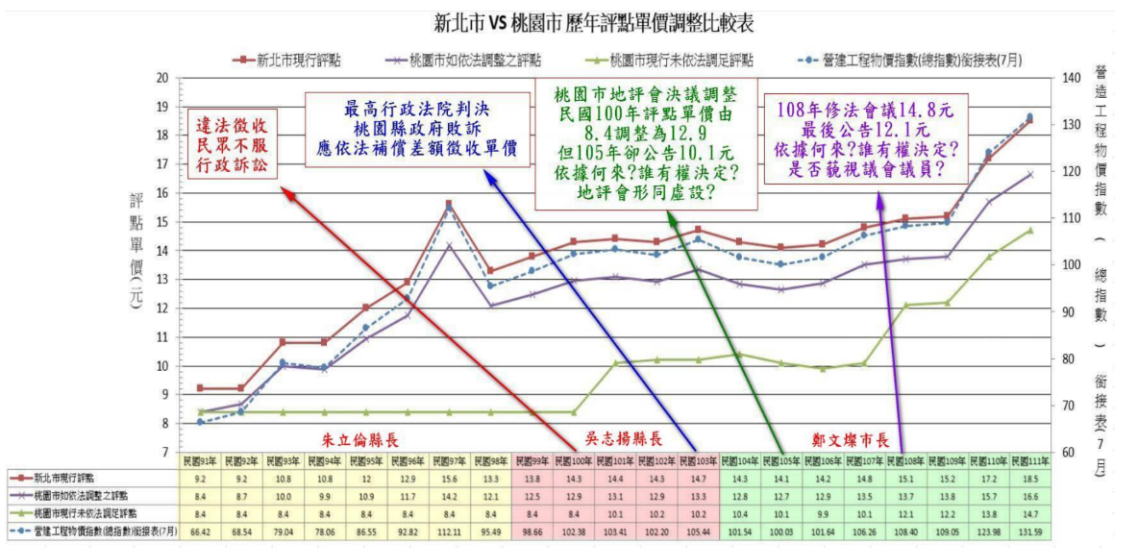 不只如此,游吾和也透露,在108年4月桃園市議會修地方自治法,將評點計值以14.8元作為基數,最後桃園市政府卻公告12.1元,讓游吾和及各徵收戶質疑,根據何來?是否在藐視議會?