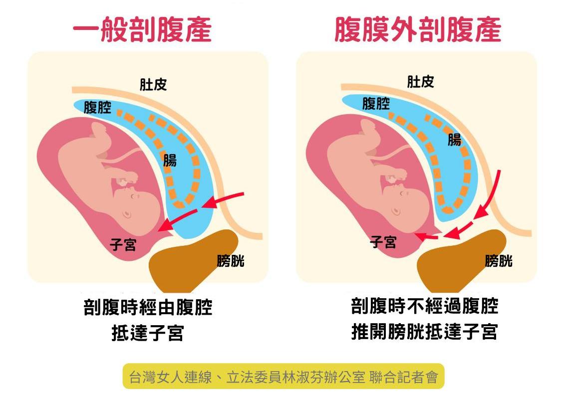 台灣婦產科醫學會秘書長同時也是台灣周產期醫學會副理事長黃建霈表示,「腹膜外剖腹剖腹產產」為剖腹產手術的一種方式,與目前的常規剖腹產(腹膜內剖腹產)的差異是剖腹時不切開腹膜進入腹腔。