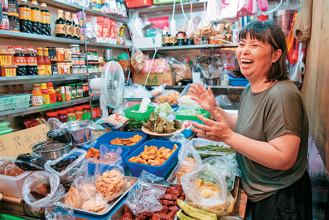 除了生鮮蔬果,東門市場還有宛如選物店般的雜貨店,不少客人因信賴店家的好眼光特意前往「挖寶」。走向陳列著漬物、素料的攤商,裡頭販售著品項繁多的豆製品,適合各種不同料理方式。不論是滷豆乾用的原味白豆乾、炒豆乾用的厚五香豆乾,還是適合涼拌的大溪黑豆乾、客家料理用的薄豆乾,甚至是少見的豆腐衣等,這裡都一應俱全。除了商品齊全,程安琪表示,老闆娘翁小姐總是十分熱情地向顧客說明商品的料理方式,讓廚房新手也能大展廚藝。