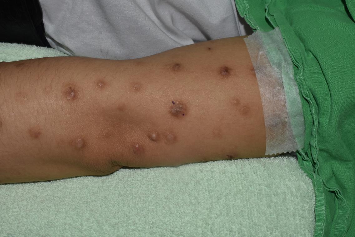 蔡呈芳先解釋,結節性癢疹是一種慢性皮膚疾病,好發於壯年及中老年人,病灶外觀有明顯較大、偏硬的顆粒狀結節,甚至融合成板塊,引發原因多元,除了部分合併異位性皮膚炎外,多數原因不明,也有人認為跟情緒因素有關。