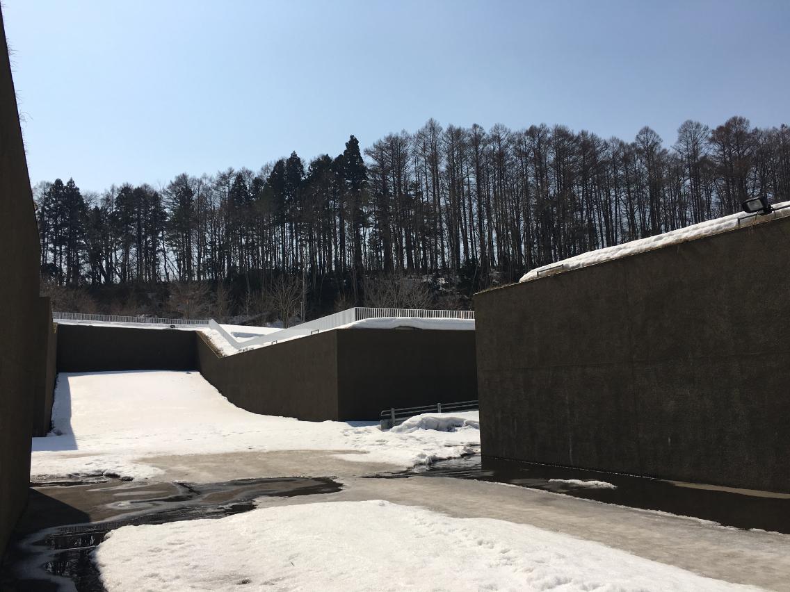 美術館本身除了白色量體之外,構造體與土層之間也作為擁有各種尺度與比例的間隙空間,回應基地脈絡特性所應運而生的展示室與活動空間。至於和構造體未能嵌合在一起的壕溝部分,則作為屋外展示空間、工作庭園等來使用。