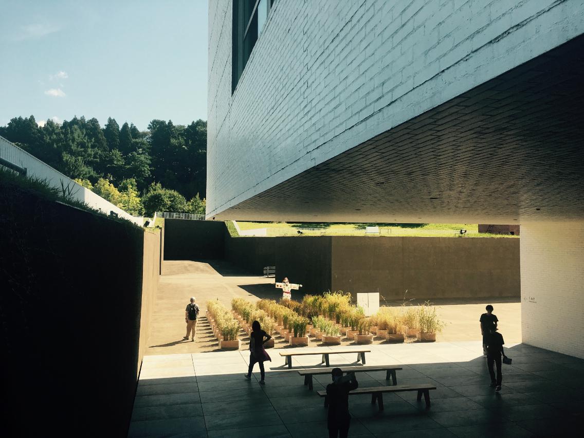 根據青木淳建築師的說法,青森縣立美術館的設計想法,是從相鄰考古遺址發掘現場發想而來的。我從青森車站搭公車,約莫20分鐘左右就抵達這座美術館。來到現場仍然可以看到考古遺址特有的鮮明痕跡,如同壕溝一般,將地表切割後向底下挖掘出幾何條狀的樣貌。