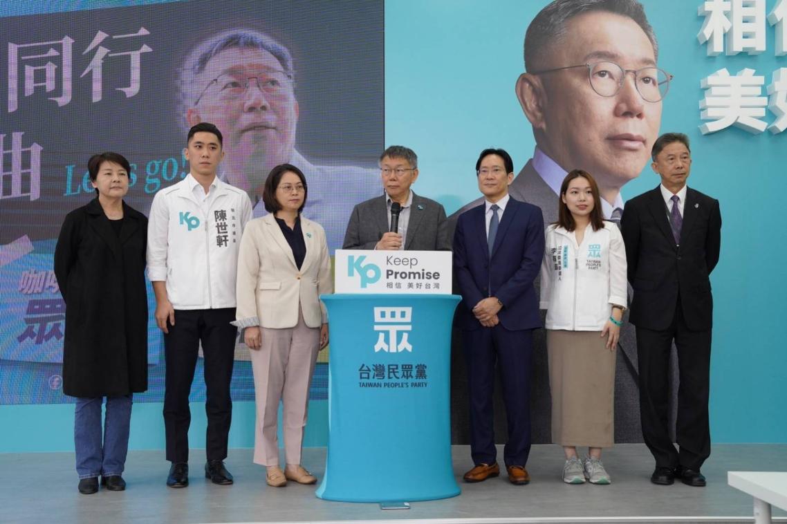 媒體聯訪環節,柯文哲與黨幹部、立委參選人排排站,問及昨(30)日與國民黨政黨協商會議中,曾提到願意與侯友宜共列一張選票上,是否不排除當副手的可能?民調方式堅持採取全民調作為底線嗎?