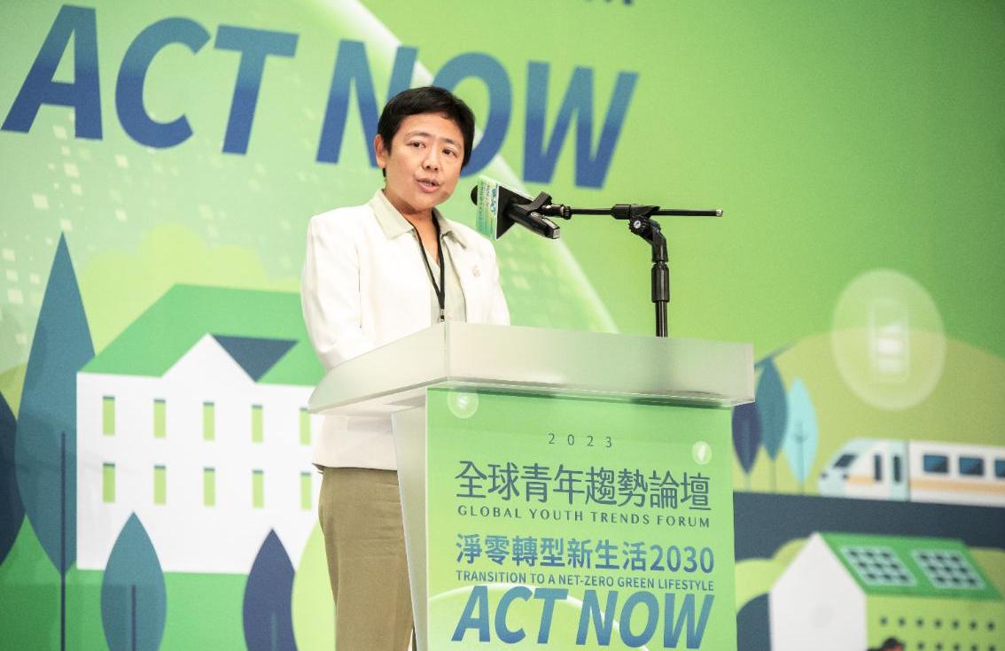主辦機關青年發展署陳雪玉署長致詞時,除了為活動帶來祝福,為這兩天的盛會揭開序幕外,更勉勵青年們在活動中能更了解及面對當前淨零轉型帶來的變遷及挑戰。2050年達成淨零排放是全球共同努力的重要挑戰,而2030年淨零轉型短中期目標,正是實現此一目標的重要時間點與關鍵里程碑。為了確保順利達成2050年淨零目標,2030年前的轉型至關重要。因此,今年論壇主題特別訂為「淨零轉型新生活2030—Act Now」,希望邀集大家共同面對氣候變遷和環境挑戰,解決全球問題,落實永續發展。