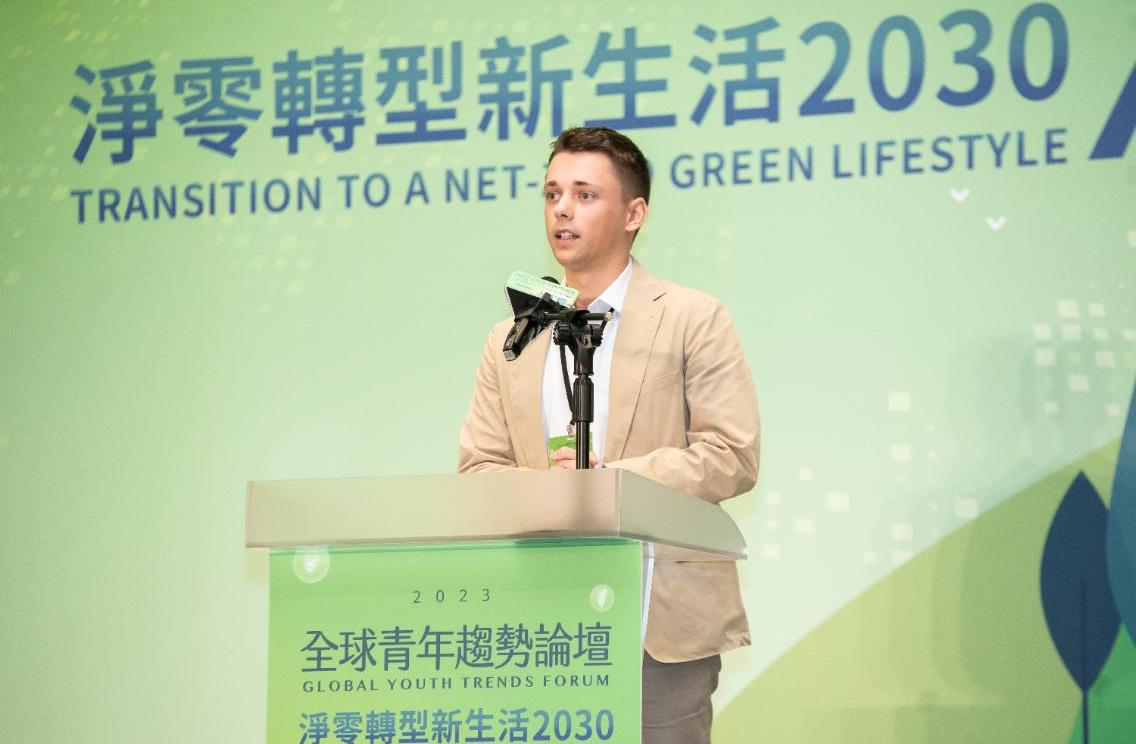 主題論壇與談人聯合國氣候變遷青年諮詢小組成員Beniamin Strzelecki表示,過去五年全球因氣候變遷引發的各種災害,氣候變遷已不容忽視,全球必須一起重視氣候變遷的影響,並提出改變解決方案,包含透過與親友分享共同理念、優先選擇重視環境永續的企業產品、未來的職涯規劃可選擇支持企業環境永續的公司。環境部施文真政務次長,分享臺灣針對2050年零碳排的目標願景制定相關的政策方針,且臺灣是少數立法針對綠色教育進行法律訂立的國家,積極推動各項綠色認證,生活轉型。另一位與談人知名電影《三個傻瓜》主角原型人物喜馬拉雅另類學院創辦人旺楚克(Sonam Wangchuk),身兼教育改革實踐家與環境永續實踐家,他創立了一所碳中和、零能耗、電力自足的「社課模」(SECMOL)先驅學校;此外,面臨喜馬拉雅另類學院當地缺水危機,他發明了人工冰錐「冰佛塔」以解決灌溉缺水問題,在論壇中分享環境永續實踐的精采歷程。