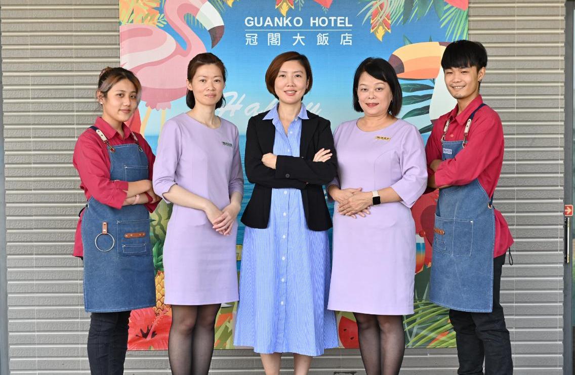 林昭伶說,飯店業屬於服務業,人力的流動與管理,直到現在都還是一個挑戰。冠閣員工人數不算多,所以身兼多職,近幾年在人力吃緊缺時,能夠相互支援,非常時期林昭伶也跳下去幫忙整房,時間壓力很大。