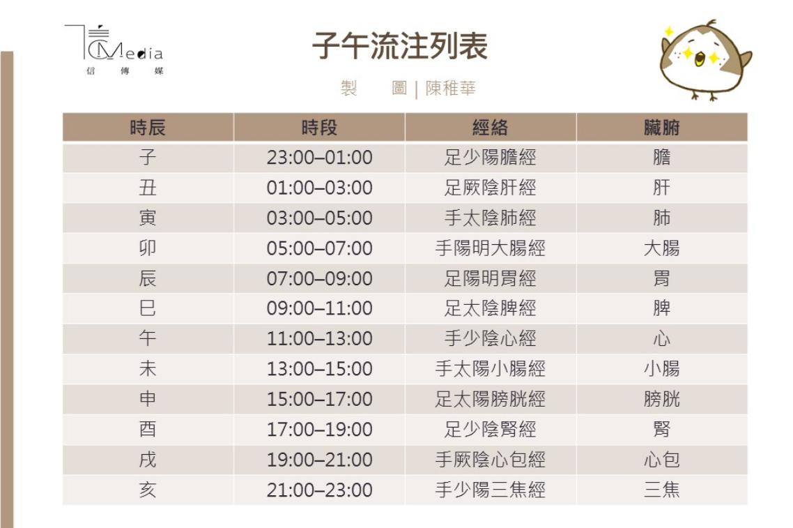 廖中醫師表示,走到「子時」和「丑時」是晚上11時到半夜3時,對應的是走到膽、肝,「這時候一定要好好睡覺,因為古人講肝乃疲極之本,代表這時是最疲累的時候,一定要好好休息,才能達到天人合一、符合六臟六腑的運作,假如照著這樣的作息運作,身體就會比較健康。」