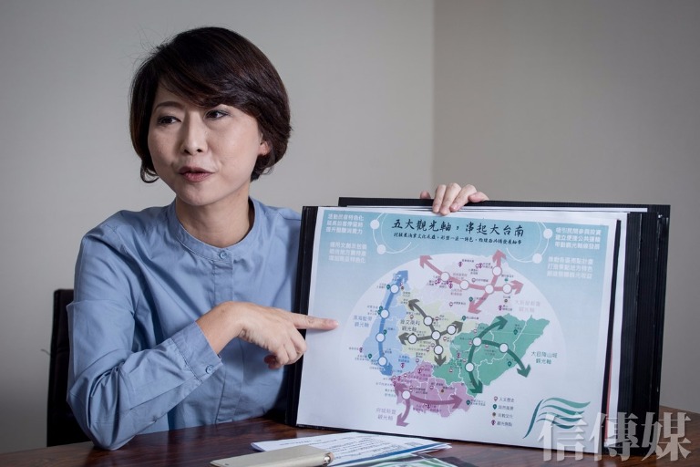 陳亭妃提出的5大文化觀光軸,包含觀光城市、綠色運輸、產業升級與都市再生等方向,不僅是將外地觀光人潮帶進來,更要把在地人才留下來。