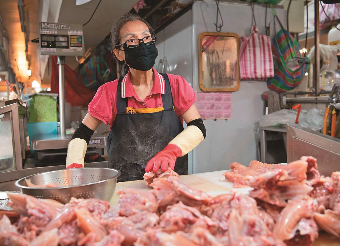 走近以販售生鮮雞肉為主的「瑞安土雞土鴨店」,手不停歇地處理著雞肉的老闆娘田容瑞說,市場周邊店家及學校餐廳使用的雞肉,幾乎都是他們家供應的。