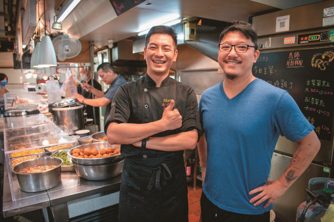 是「馬師廚房原創料理」的常客,對老闆馬才淯(左)的料理熱情大表讚賞。(攝影/李智為).jpg)