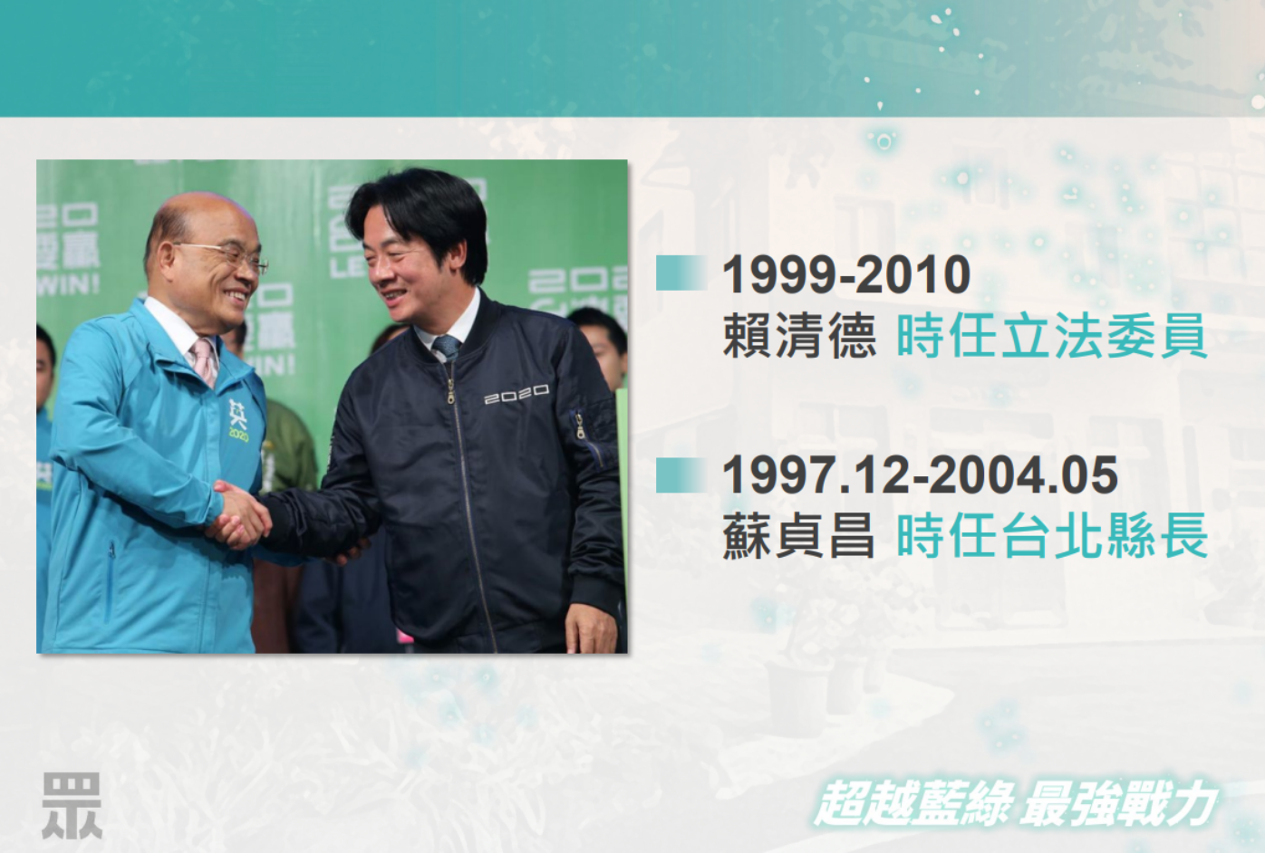 其次,興建時,賴清德已是立委,而時任台北縣長為蘇貞昌。