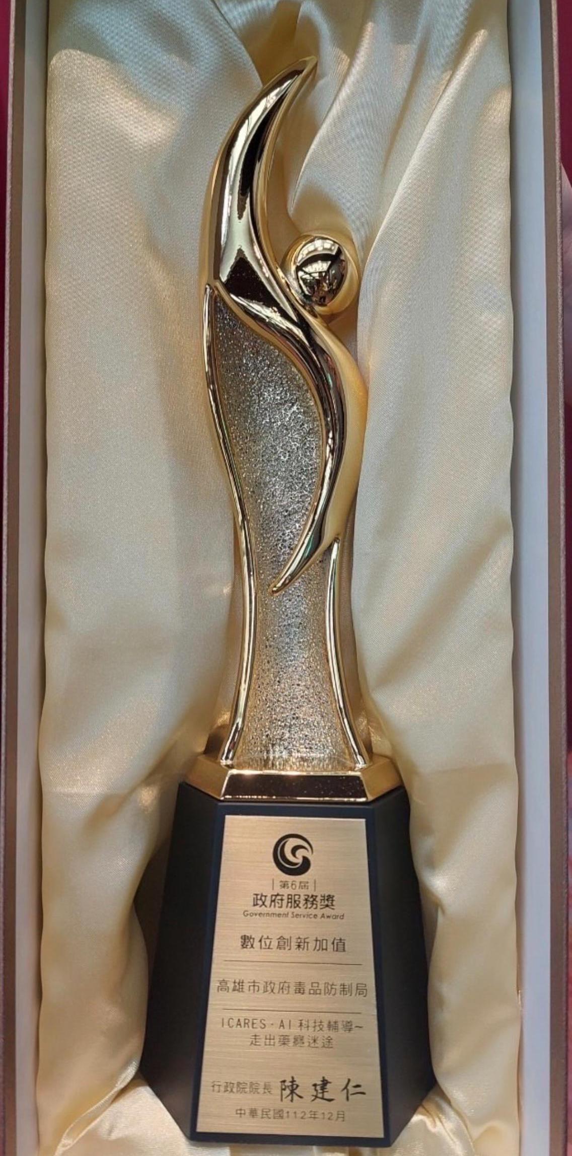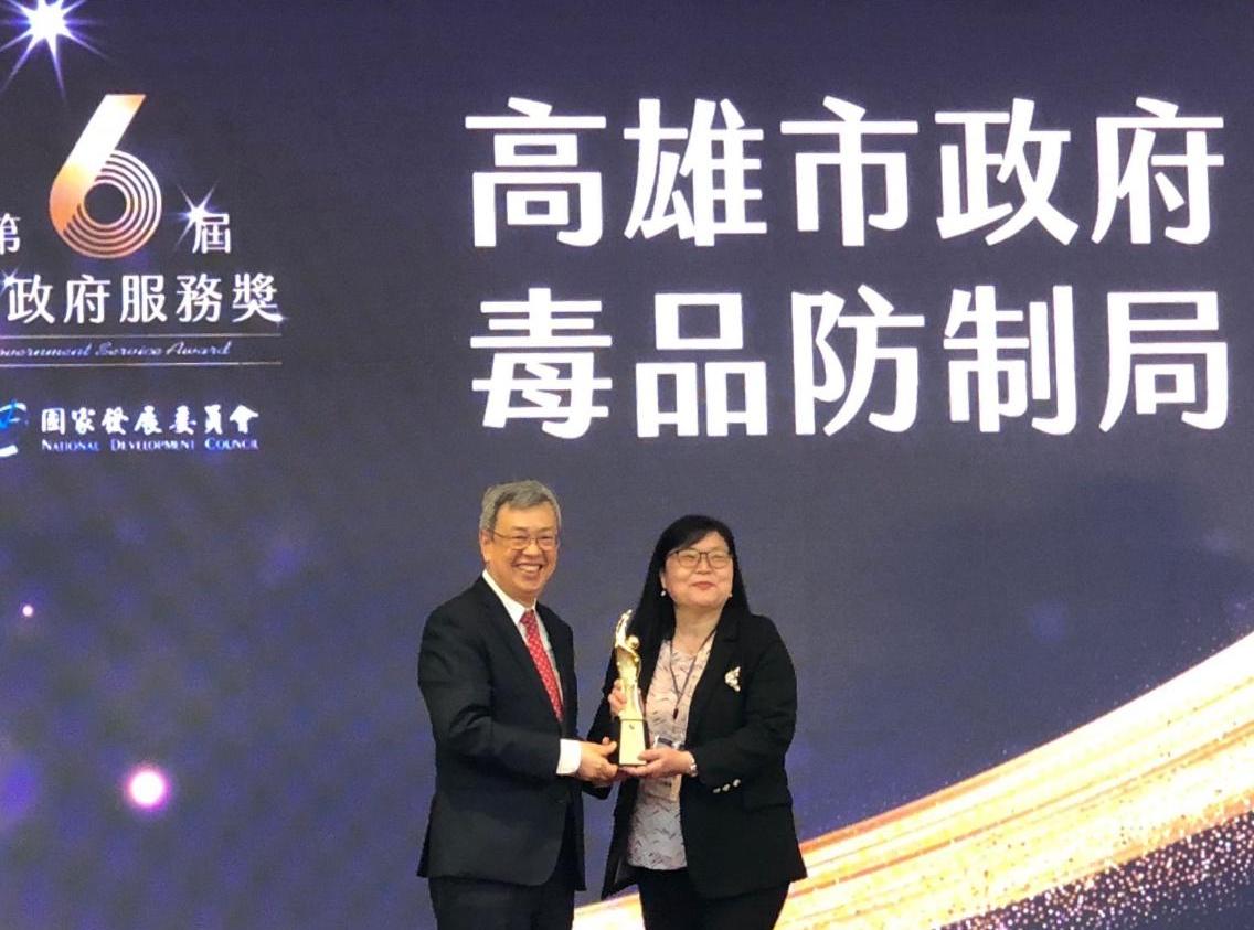 行政院國家發展委員會6日在臺大醫院國際會議中心舉行第六屆「政府服務獎」頒獎典禮,由行政院長陳建仁親自頒獎,有「公部門奧斯卡獎」之稱的「政府服務獎」本屆共有145個機關參獎(數位創新加值項49個、社會關懷服務項96個)並評選出25個得獎機關(數位創新加值項機關9個、社會關懷服務項16個),高雄市政府長年致力於為民服務品質之提升與推動,每年均榮獲政府服務獎的肯定,今年毒防局、教育局2項入圍均得獎。
