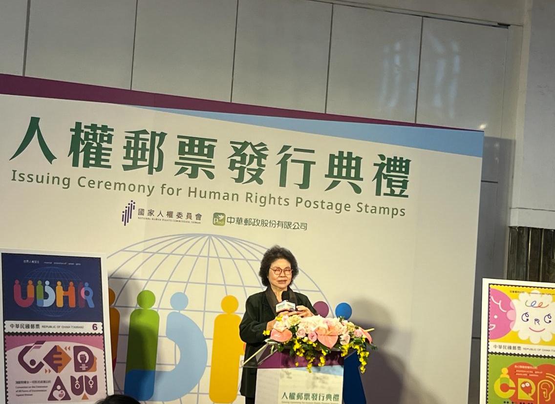 國家人員委員會主任委員陳菊表示,中華郵政在民國53年,台灣還處於戒嚴的時期,只能知道人類社會有必須共同遵守的世界人權宣言。經過了59年的時間,現在台灣人權已經有明顯進步,願意跟世界同步,努力遵守公約。中華郵政這次發行的人權郵票1套4枚,分別以世界人權宣言、消除對婦女一切形式歧視公約、兒童權利公約、身心障礙者權利公約為主題,以各公約英文簡稱結合獨特色彩、符號來設計。