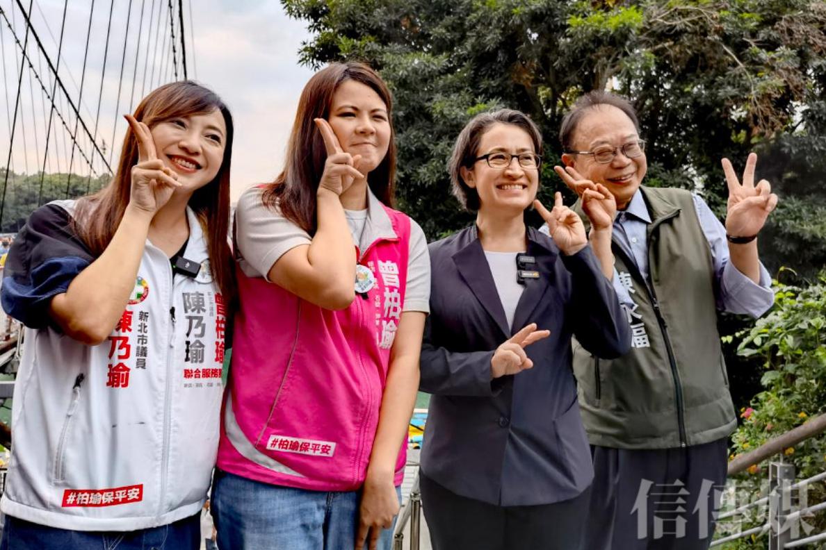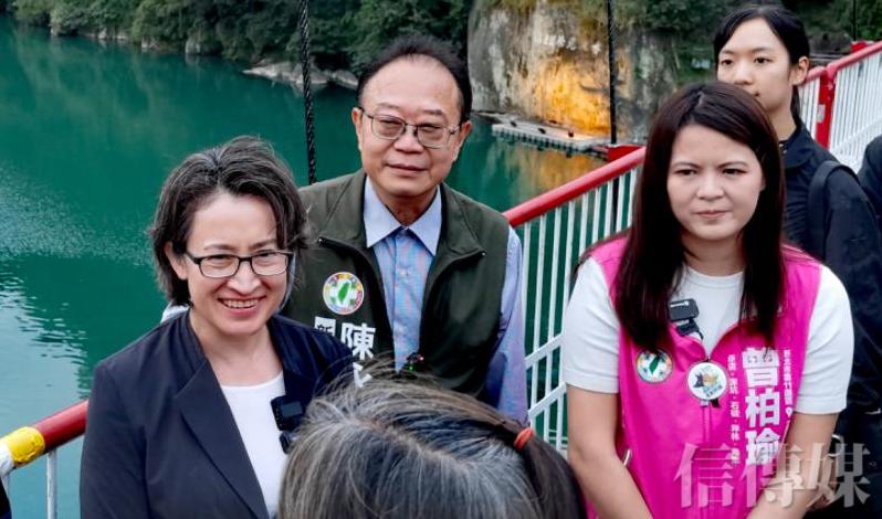 蕭美琴今日前往新店參訪碧潭吊橋,為曾柏瑜站台輔選,隨行的還有同黨籍市議員陳乃瑜和陳永福。一行人在曾柏瑜的帶領下,參觀吊橋並介紹碧潭的文史事蹟,現場還有熱心在地群眾介紹碧潭曾經的渡口,與後來闢為觀光景點後的愛情故事,分享新店人共同的青春記憶。