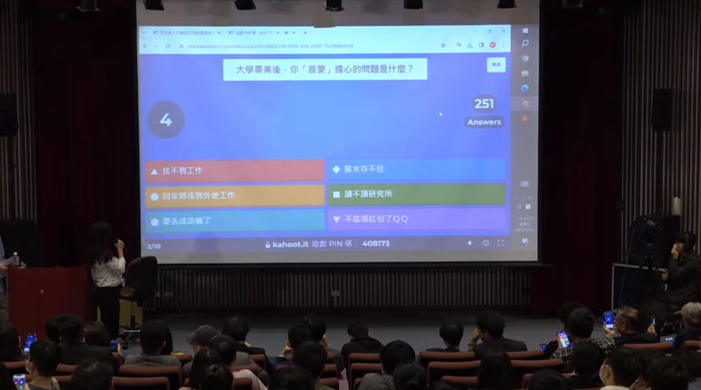 開場準備互動小遊戲展現科技力,回答選項引學子笑聲不斷