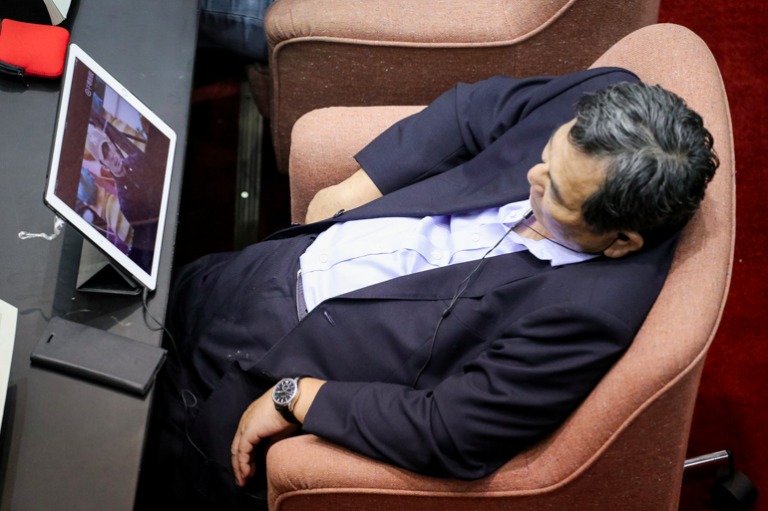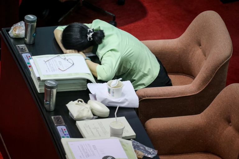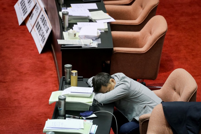 公務人員退休資遣撫卹法逐條審查已持續進行三日,因藍委的踴躍發言使得會議持續拖延,不少委員直接趴在桌上休息。(攝影/蕭芃凱).jpg)