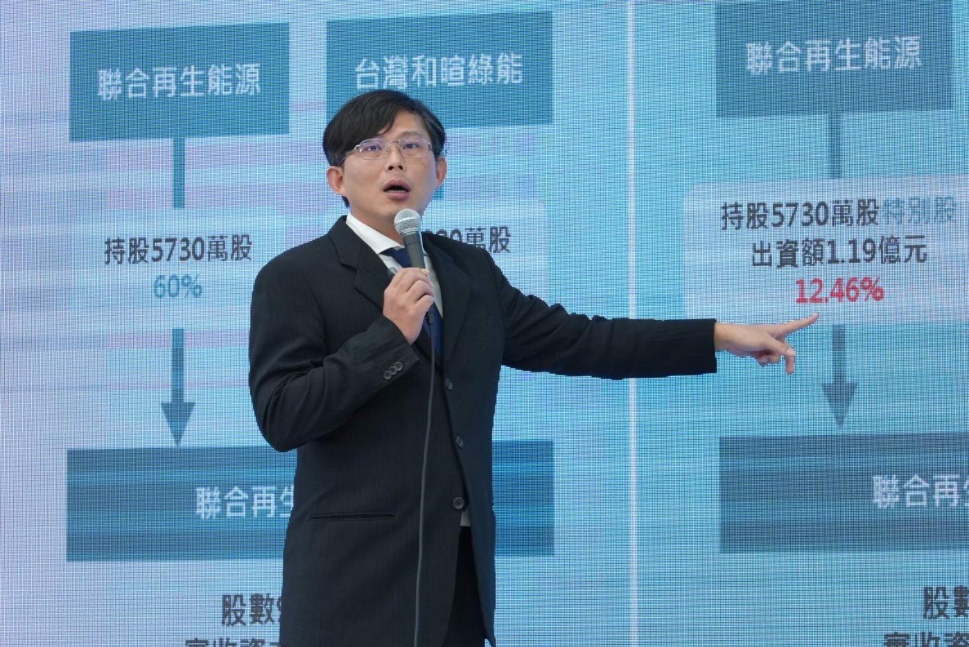 至於為何經濟部沒有終止租約的原因,陳琬惠表示,是因為聯合再生執行長潘文輝發簡訊給民進黨立法院黨團總召柯建銘,並在2022年5月19號上午帶了其於2位下屬拜訪柯建銘辦公室,最後喬出以偽裝的方式,表面上聯合再生持股6成,但實際上,聯合再生認購的是「特別股」,出資額1.19億元,真實持股不到12.5%,而和暄綠能持3820萬股「普通股」,真實持股87.53%,依舊明顯違反當初的契約。