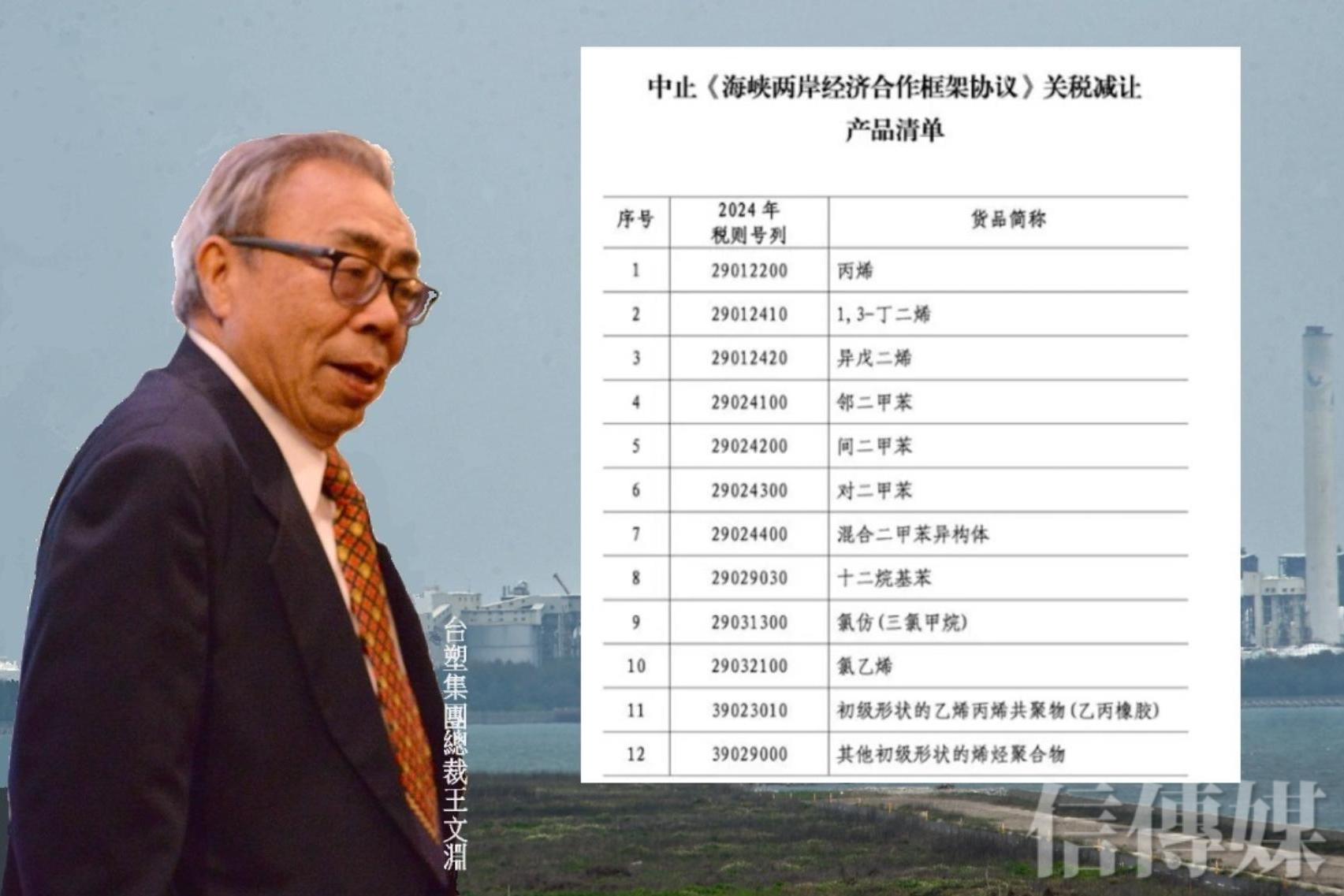 台塑集團表示,基於2010年6月起,兩岸在九二共識基礎上,所簽署的《海峽兩岸經濟合作框架協定》(ECFA)對兩岸經濟發展有重大貢獻,但很遺憾大陸即將中止ECFA部分石化產品的關稅減讓,這對台灣的很多產業影響很大。希望兩岸經貿應該加強交流合作而非對抗或中斷,兩岸關係能夠重回和平發展軌道,兩岸政府能夠對話,儘速協商解決兩岸經貿關係中的各類問題。