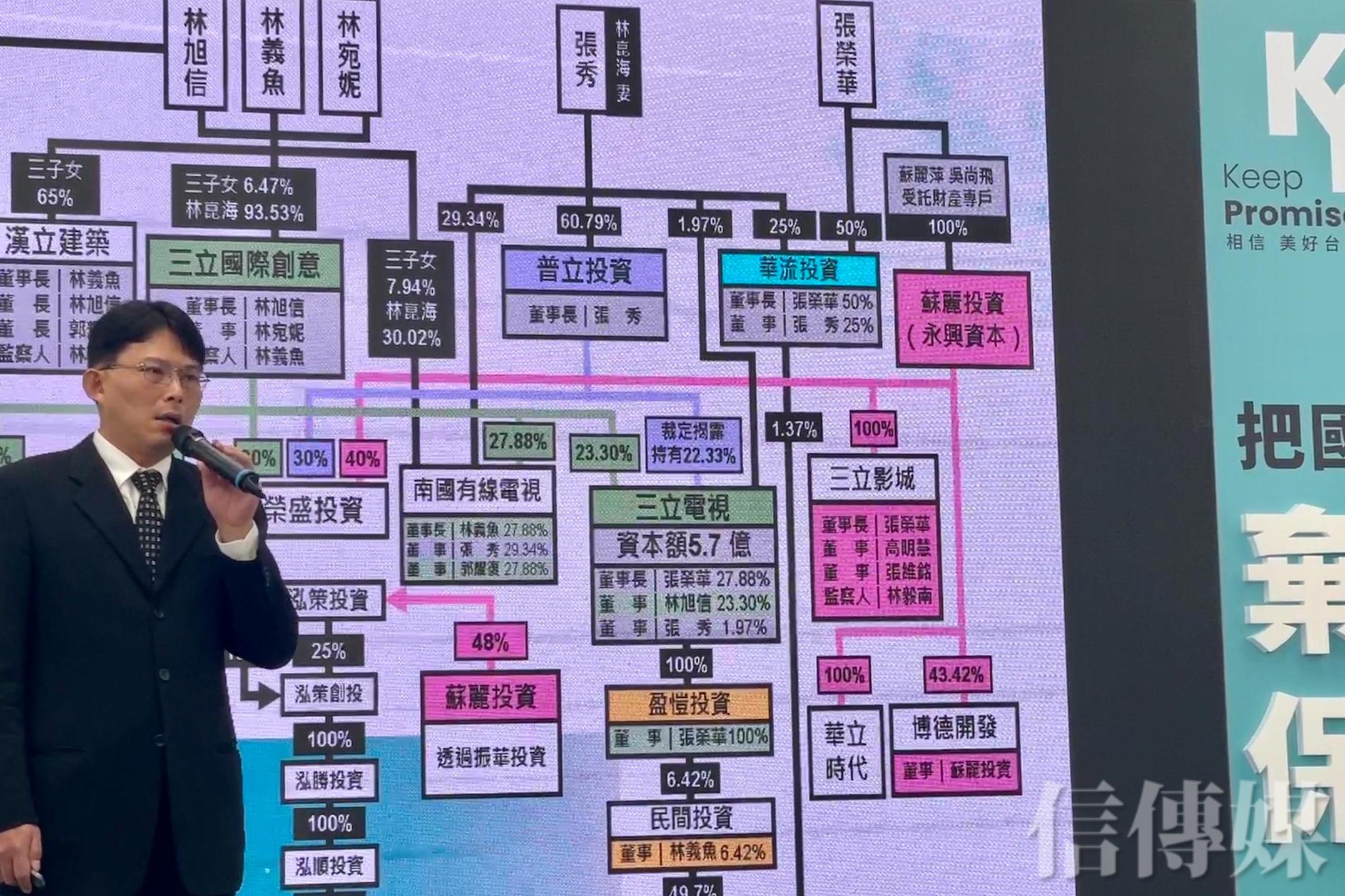 台灣民眾黨不分區立委候選人黃國昌、張啟楷、陳智菡,以及柯文哲競辦發言人吳怡萱,今(27)日上午以「炒地大亨掌控媒體 獨厚圖利自家政客」為題召開記者會,針對近來媒體現象,揭露台灣民主自由的深層危機。