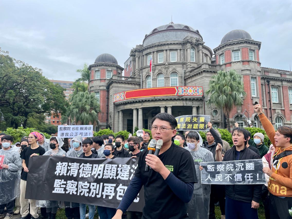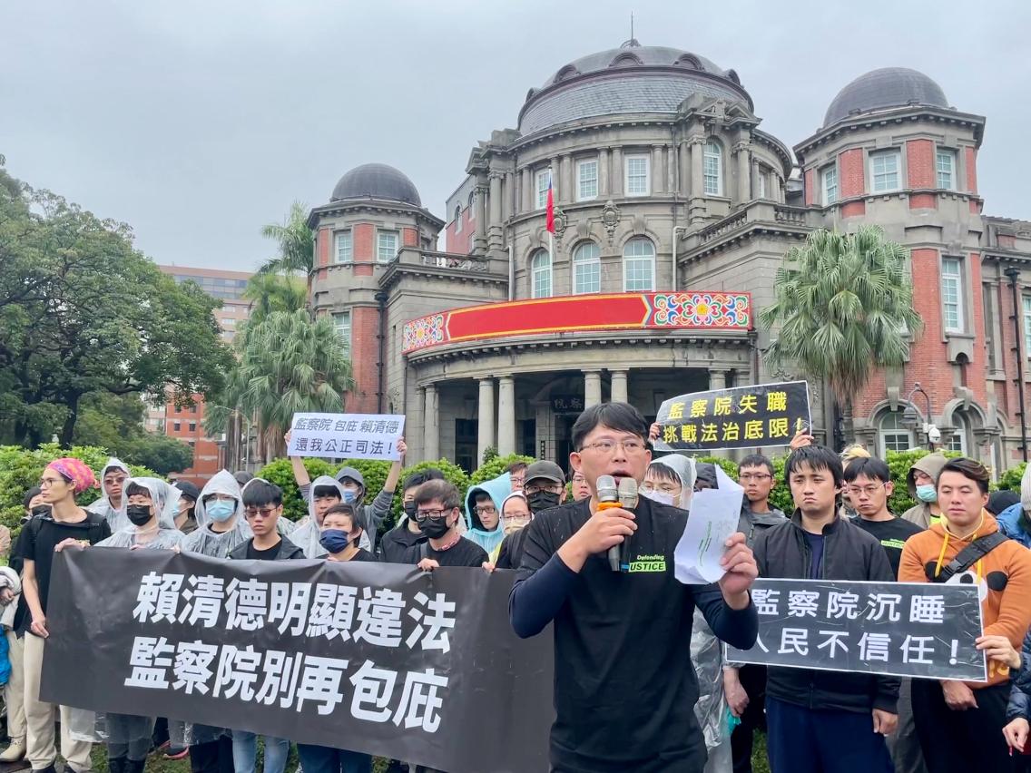 針對民主進步黨總統候選人賴清德的萬里老家違建爭議,台灣民眾黨不分區立法委員候選人黃國昌,今(28)日上午在監察院外抗議,強調賴清德從未誠實依法申報,當了副總統也沒有把依法把老宅依法交付信託,監察院卻始終裝沒看見,要求監察院長陳菊出來面對。