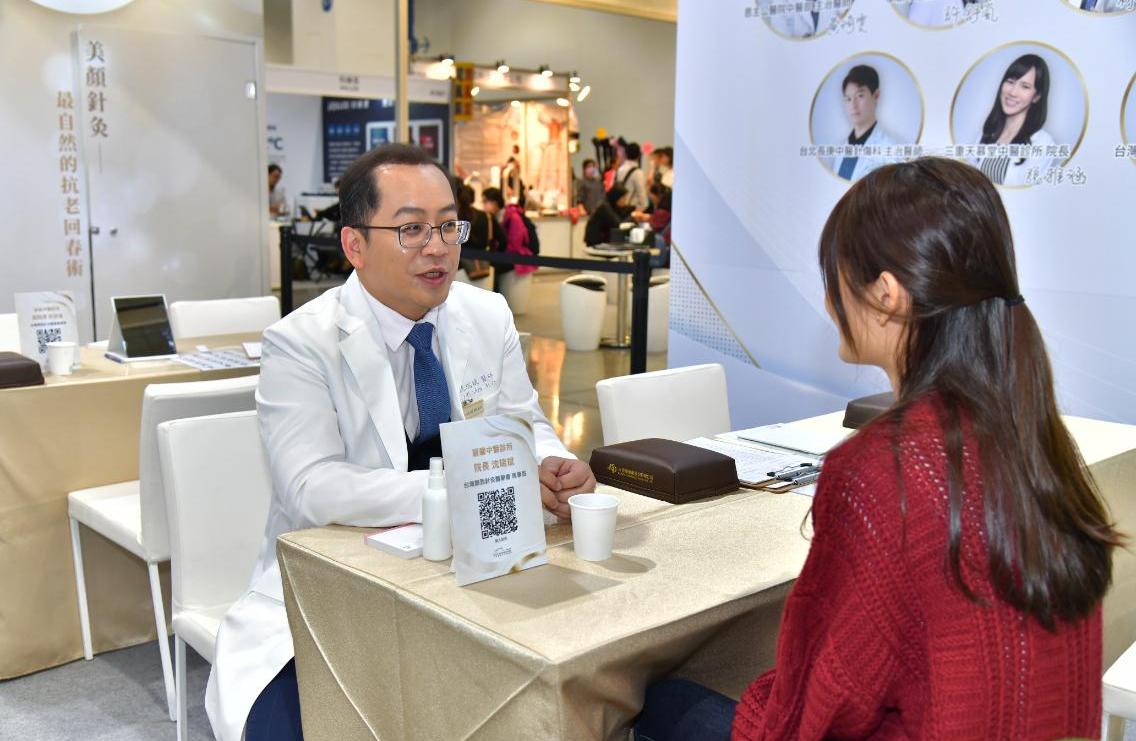 台灣顏面針灸醫學會理事長沈瑞斌於醫療展主題館免費提供民眾中醫諮詢。