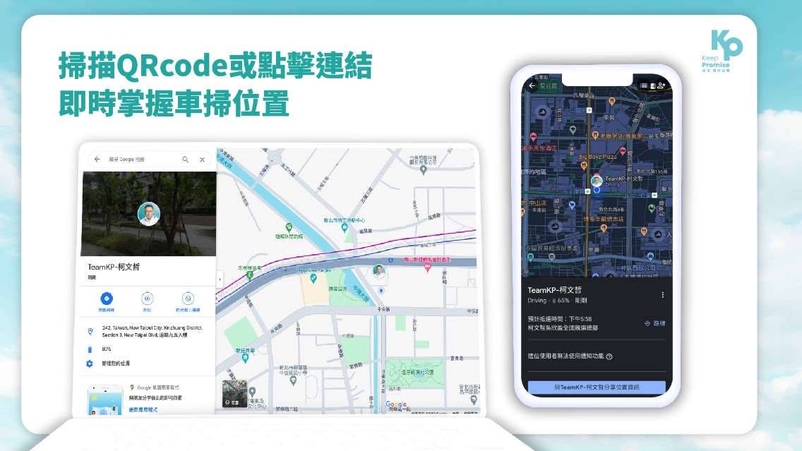 黃珊珊表示除了全程有SNG車直播,也會用QR code即時定位,由同仁開著Google 地圖,支持者只要在網路上查詢,就可以清楚知道車隊目前所在位置,方便上班族、學生、家庭主婦等,看到車隊靠近自己時,就可以到路旁幫車隊加油打氣,官網也會在1月5日上線車掃定位新功能。