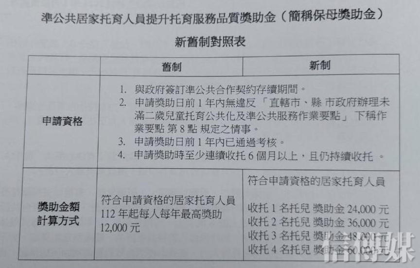 綜上供不應求、時代觀念變遷等因素下,托育盟表示,當政府高喊擴建公共托育服務的同時,若忽視充實托育服務人力,終將導致整體服務大崩盤,呼籲調整「準公共居家托育人員提升托育服務品質獎助金」(下稱保母獎勵金),吸引並留住托育兒人才,讓我國能在因應少子化政策,其重要的第一步順利發揮作用,「頭過身就過」。