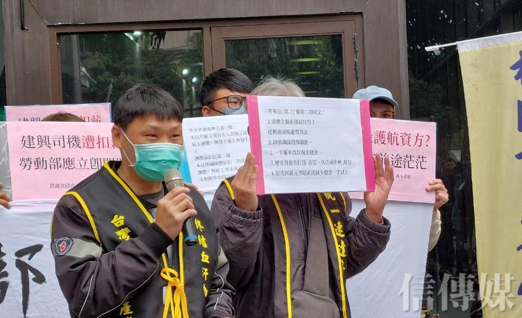 林昶志補充,運輸業薪資結構複雜,一直以來都讓資方有違法的空間,因此貨運倉儲工會的調解訴求也才有「薪資結構的調整」,結果調解被政府阻擋,而基層的勞工也完全沒有保障,這種明顯為了規避勞檢、為了規避法令的種種措施,請勞動部明確要求建興集團應恢復原本的勞動條件,並且應實施專案勞檢,認定4萬元的激勵獎金就是司機的薪資,不要再讓建興集團可以去苛扣勞工的血汗錢。