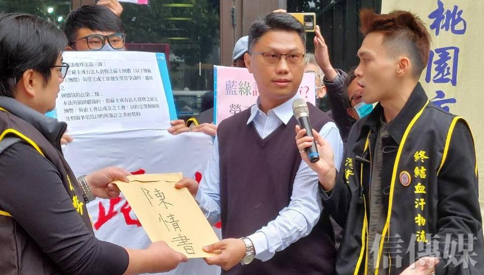 勞動部部分,則由金姓科長出面接下陳情書。面對工會訴求,他表示會依法請桃園市政府儘速召開協商會議;而針對有貨運公司任意變更勞工薪水,金姓科長表示,事業單位要調整薪資結構,不可片面更動,要跟勞工討論,並說勞動部職安署會儘速調查。
