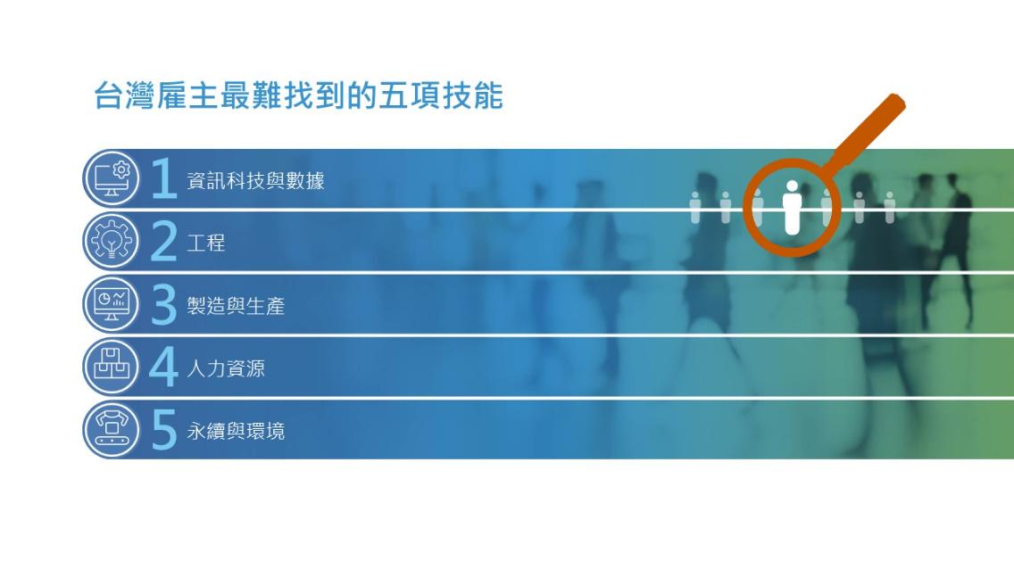 年終轉職潮即將來臨,不少人想在年後轉換職位,不過台灣雇主卻面臨徵才困難的情形,據 ManpowerGroup萬寶華〈2024全球人才短缺調查〉結果,73%的台灣雇主反映找不到適合的人才,最為短缺的前五項技能分別為資訊科技與數據技能(35%)、工程技能(26%)、製造與生產技能(24%)、人力資源技能(23%)、永續與環境技能(20%)。