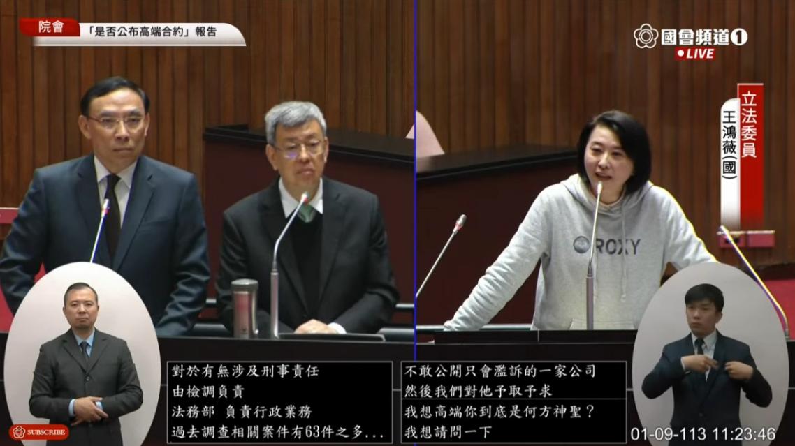多位朝野立委要求公布高端合約,民眾黨立委邱臣遠指出,8日朝野協商後達成共識,專案報告在當天下午5時送到委員辦公室,9日上午他7點就到辦公室,卻等到8點15分才收到專案報告,並批評11頁的報告竟要拖到隔天,也強調不能接受合約過程中不夠公開透明,甚至有圖利特定廠商之疑。