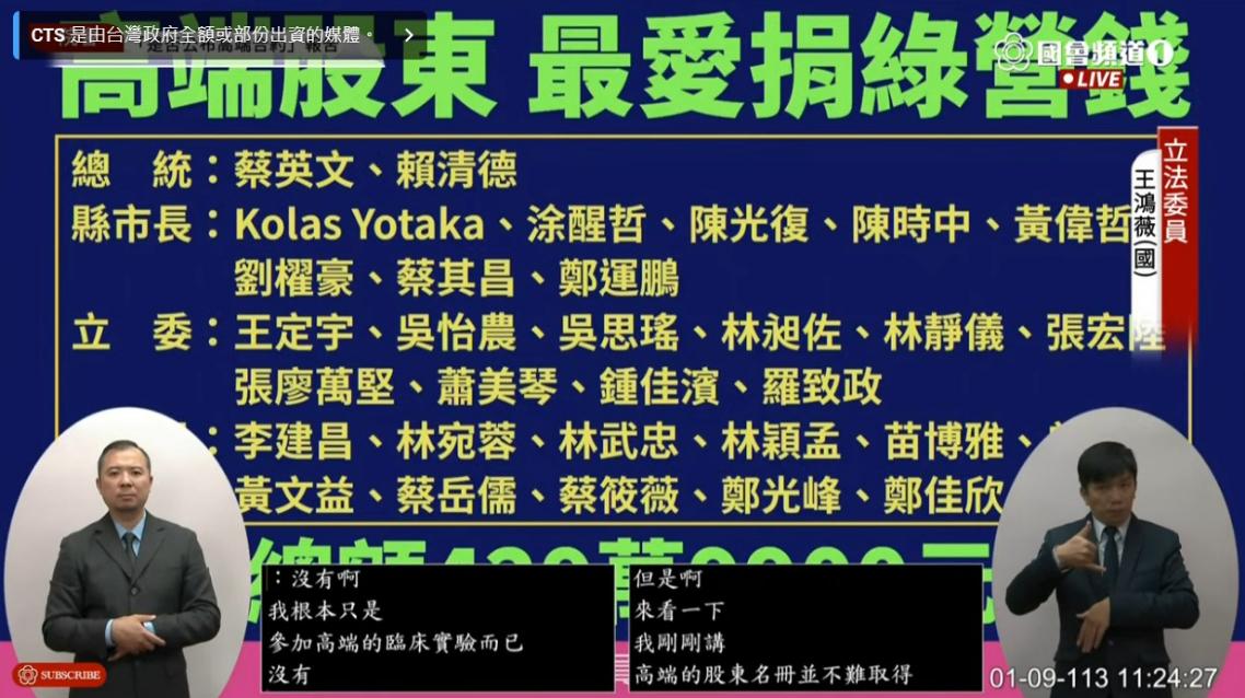針對到底是誰不讓公布高端合約,國民黨立委賴士葆拿出陳建仁日前說法,及高端2020年發布重訊,寫下「依採購機關要求,合約其他細節不予公開」比照,雙方互踢皮球。