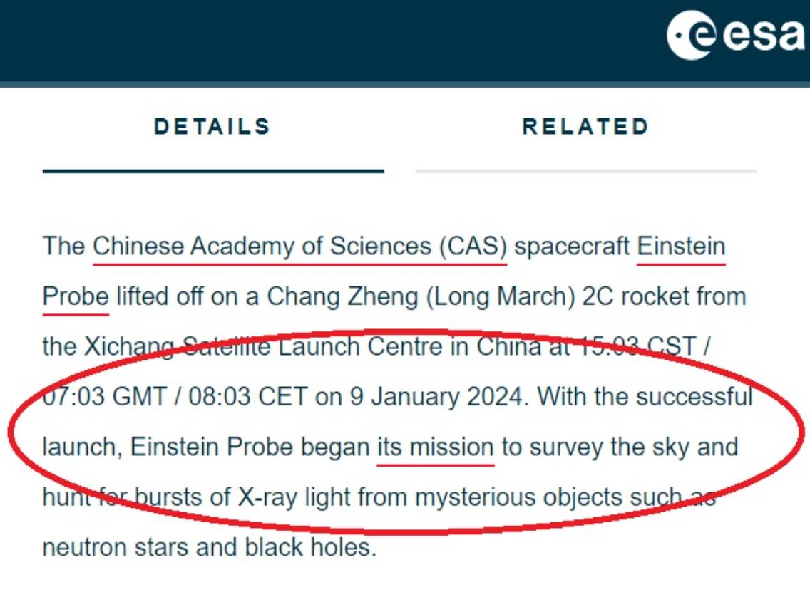 中共西昌衛星發射中心昨天發射的長征運載火箭,搭載的是歐洲太空總署(European Space Agency)所參與研發的「愛因斯坦探針衛星」,用於捕捉愛因斯坦預言的「黑洞」、「引力波電磁對應體」等天文現象。