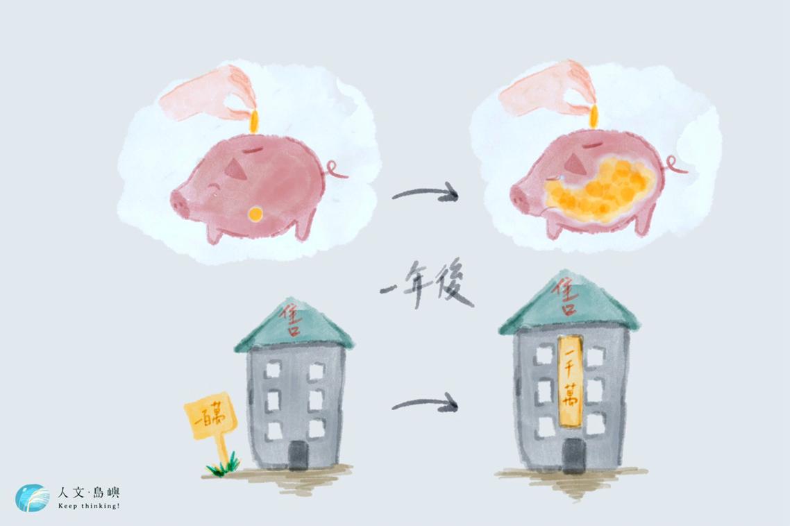 「通膨為什麼對年輕人影響特別大?」蔡怡純憂心忡忡:「傳統觀念說儲蓄是一種美德,可是一個年輕人好不容易在一年間存了五十萬,同時期的房價卻已經漲了兩百萬,並看見那些炒作預售屋的投資者,早就賺回好幾倍。這樣踏實儲蓄的人會不會感到委屈?這樣的機制合理嗎?」