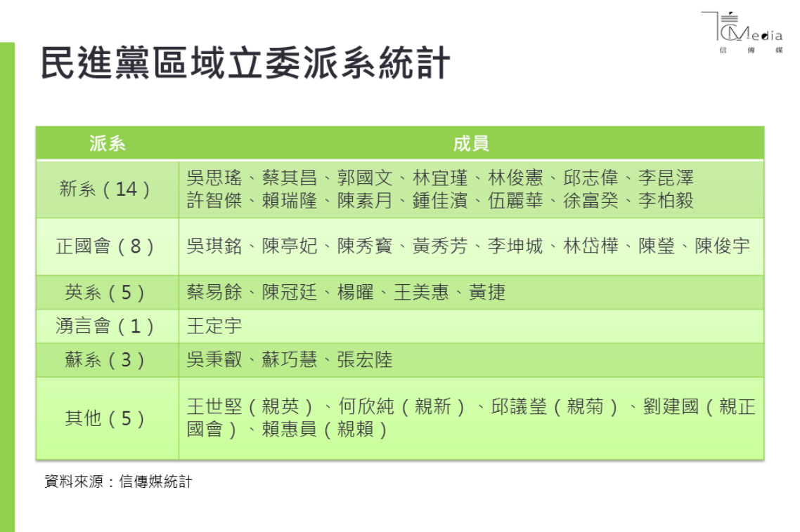 民進黨有9席現任立委不爭取連任,另有台東選區劉櫂豪脫黨參選,總共10席因陣前換將而拉警報,選戰結果顯示,在這10席中就有新北八選區、基隆與台東3席落敗。