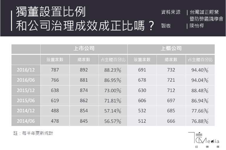 根據統計,到去年底為止,上市櫃公司設立獨董的比例都已經達到約9成。但若觀察公開資訊觀測站的公告,從今年年初至7月1日止,上市櫃公司獨董自行辭職的人數卻已達59人,和去年全年共73人辭職相比,人數有明顯增加的趨勢。